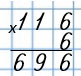 Умножаю сотни: 1 • 4 = 4. К 4 сот. прибавляю 2 сот., которые получены при умножении единиц: 4 + 2 = 6. Пишу 6 под сотнями.