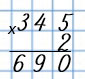 Умножаю сотни: 3 • 2 = 6. Пишу 6 под сотнями.