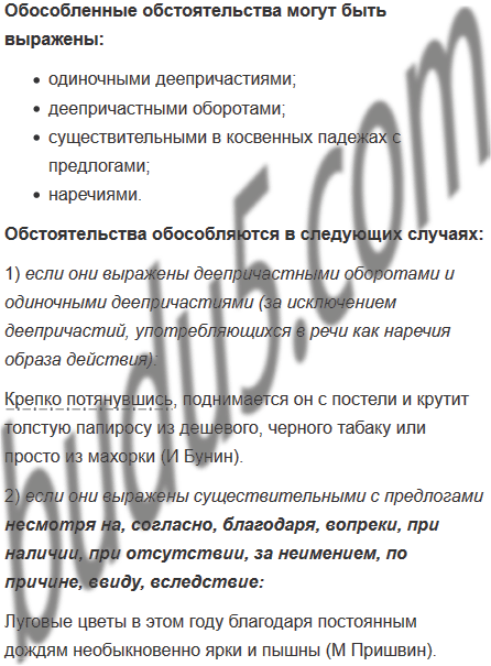 Обратимся к теме "Обособленные обстоятельства".