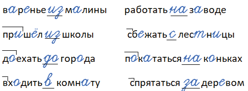 Прочитайте. Запишите словосочетания, вставляя пропущенные буквы и предлоги.