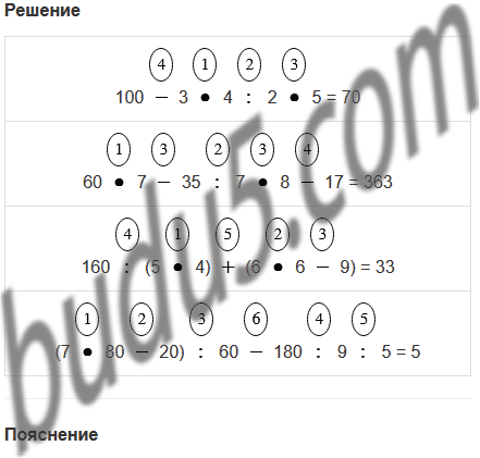 | 100 - 3 • 4 : 2 • 5 | 160 : (5 • 4) + (6 • 6 - 9) |
