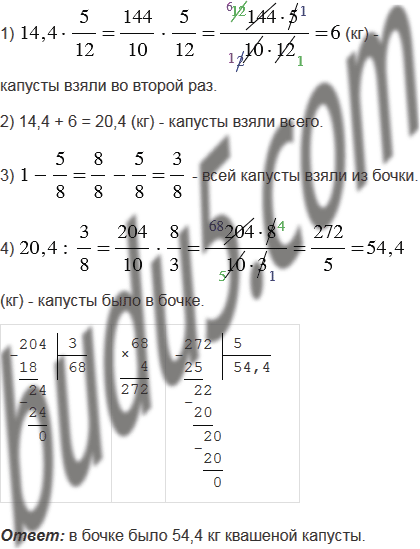Из полной бочки взяли 14,4 кг квашеной капусты и затем ещё