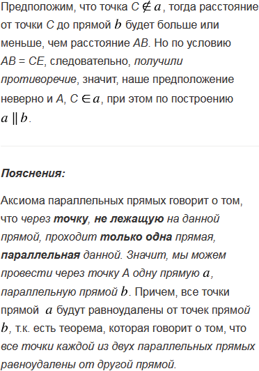 Докажите, что все точки плоскости, расположенные по одну сторону от данной прямой и равноудаленные от нее, лежат на прямой, параллельной данной прямой.