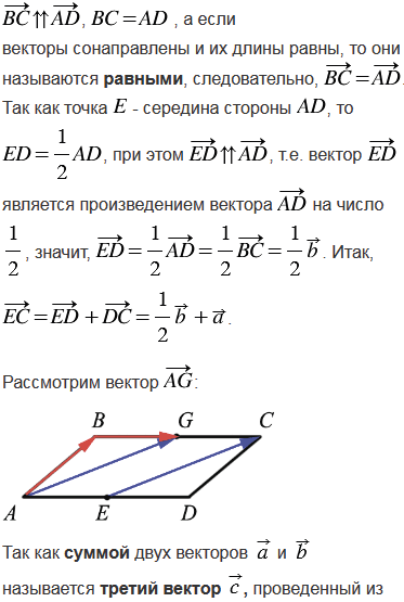 В параллелограмме ABCD точка Е - середина стороны AD, точка G - середина стороны ВС. Выразите векторы