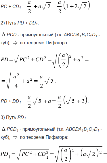 Комната имеет форму куба. Паук, сидящий в середине ребра, хочет, двигаясь по кратчайшему пути, поймать муху, сидящую в одной из самых удаленных от него вершин куба. Как должен двигаться паук?