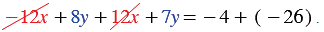 В левой части полученного уравнения приводим подобные слагаемые, учитывая то, что сумма противоположных чисел равна нулю, получаем: